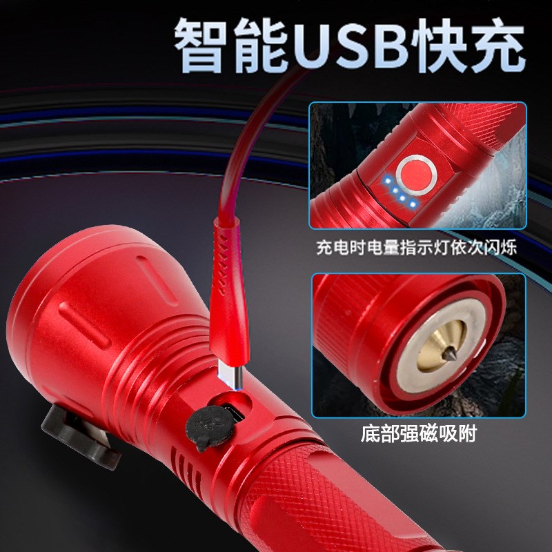 新款车载防身手电筒强光充电超亮多功能应急破窗锤虎指灯战术手电