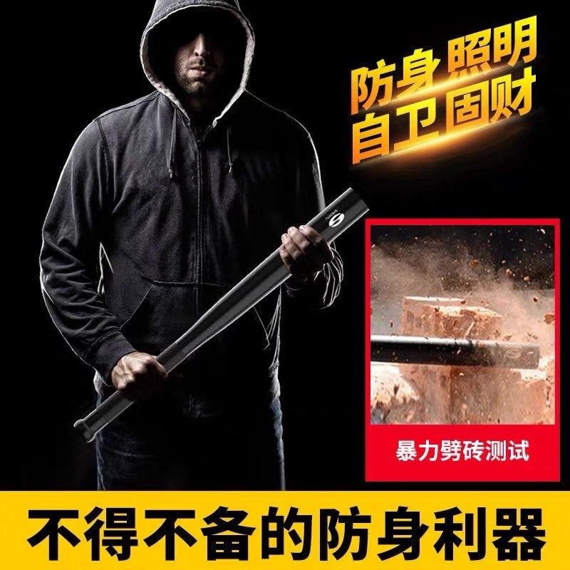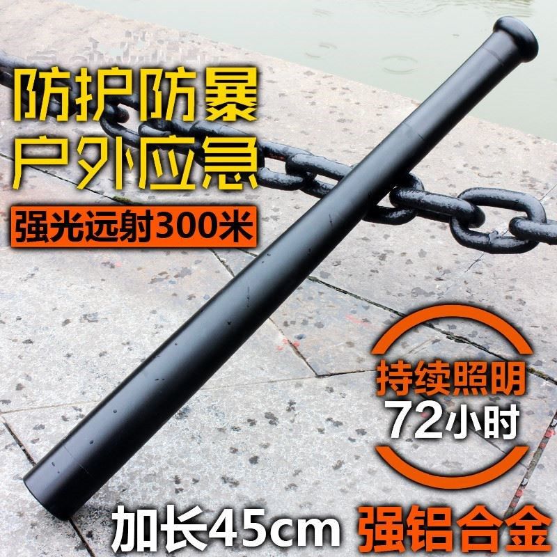 户外棒球手电筒强光狼牙棒防身棍加长款T6远射充电车载防爆安保