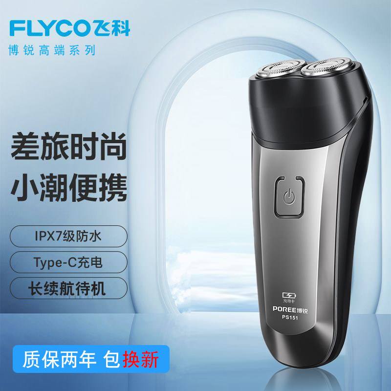 飞科博锐电动剃须刀PS181全身水洗旋转式两刀头小巧车载充电刮胡