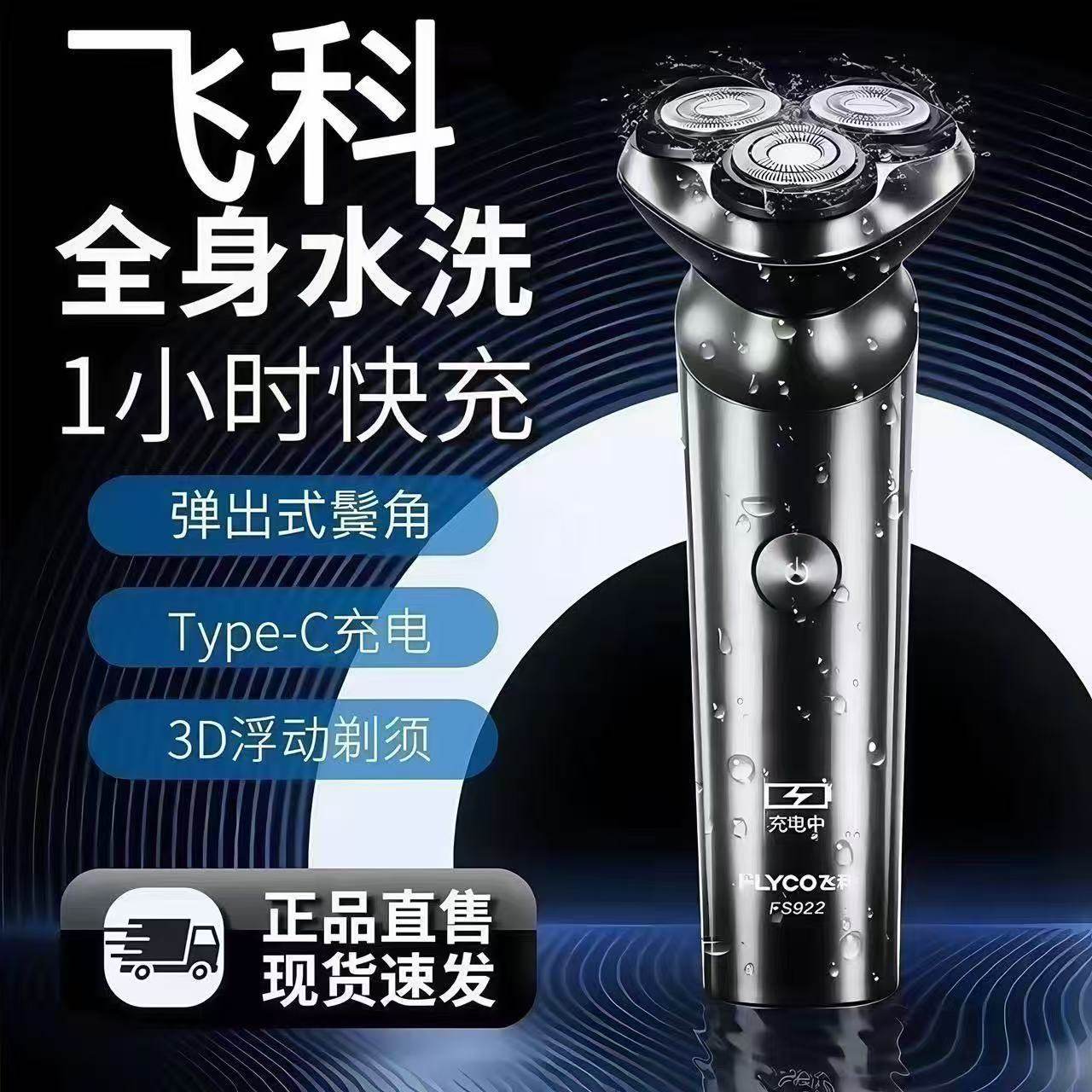 飞科剃须刀fs922全身水洗原装正品三刀头旋转式充电式电动刮胡刀