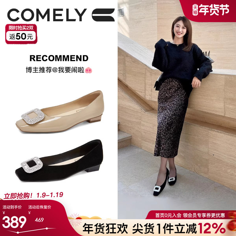 康莉comely低跟浅口单鞋中空方头方扣平底鞋 159元起不定时更新