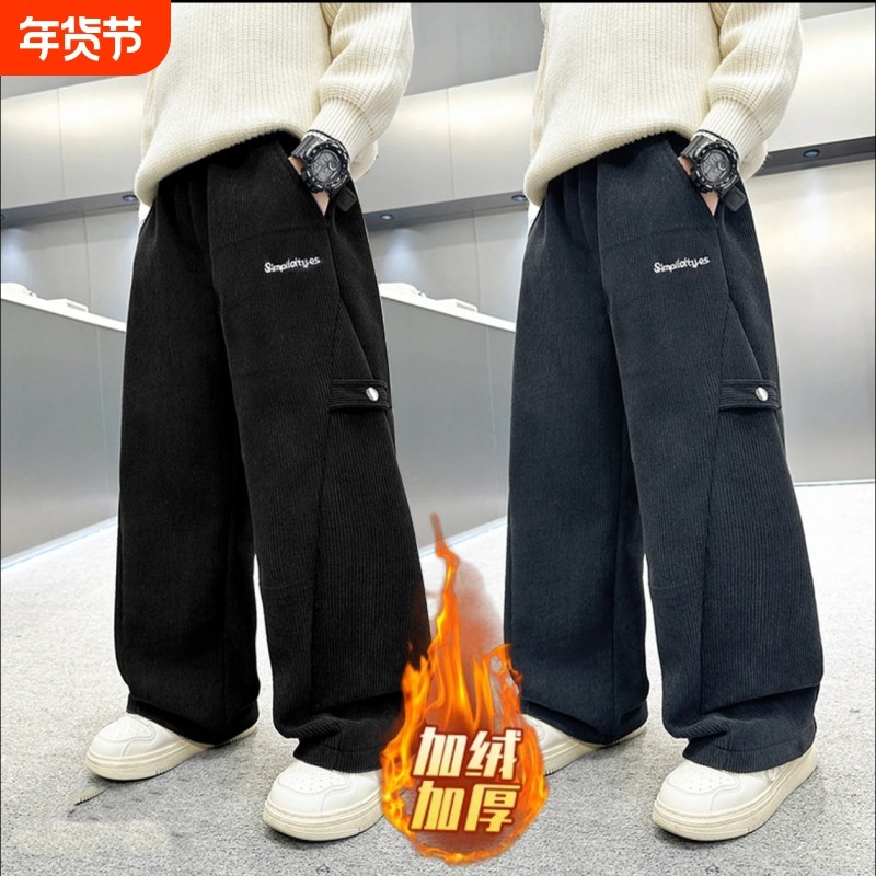 男童裤子秋冬款新款韩版中大童洋气休闲裤儿童直筒裤加绒灯芯绒裤