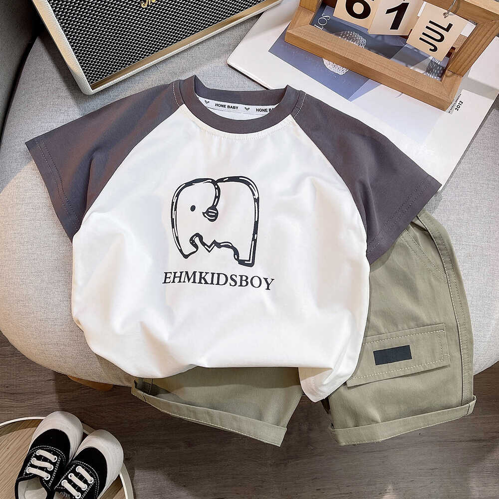 男童t恤套装新款夏装纯棉儿童短袖T恤洋气五分短裤两件套短裤套装
