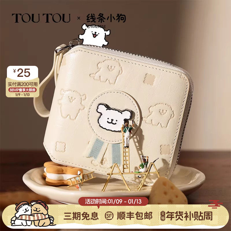TOUTOU线条小狗周边钱包轻薄小巧卡包收纳零钱包可爱生日礼物女款