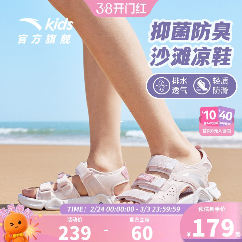 安踏儿童女童凉鞋2026年夏季新款女孩凉鞋防滑露趾宝宝软底沙滩鞋