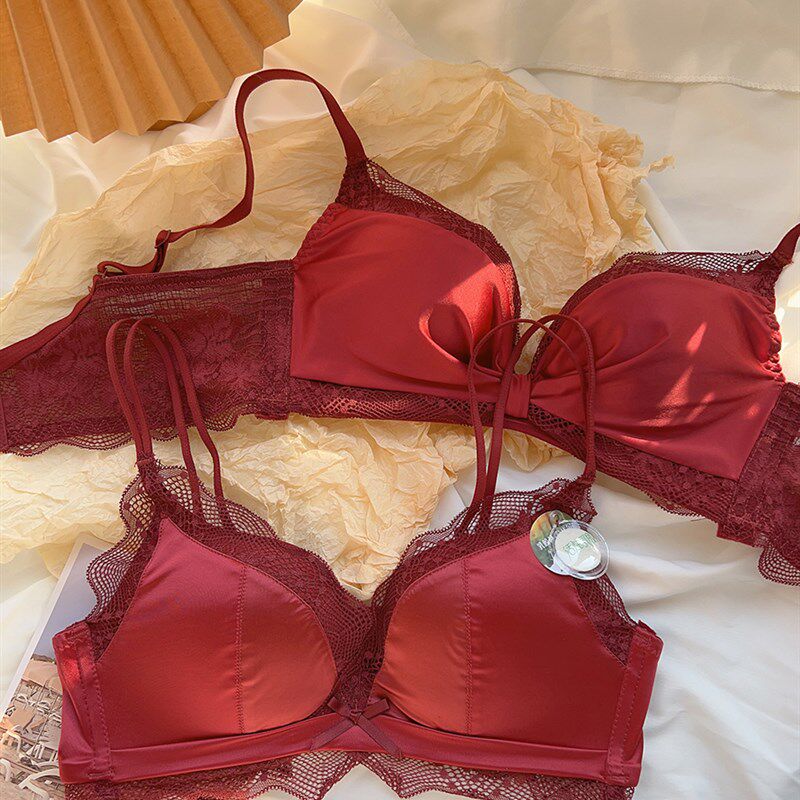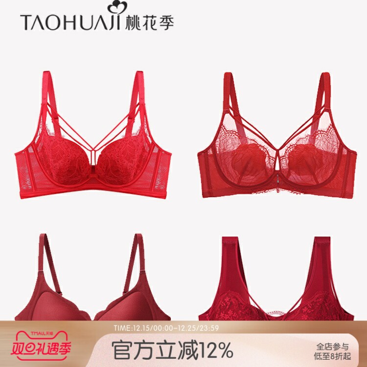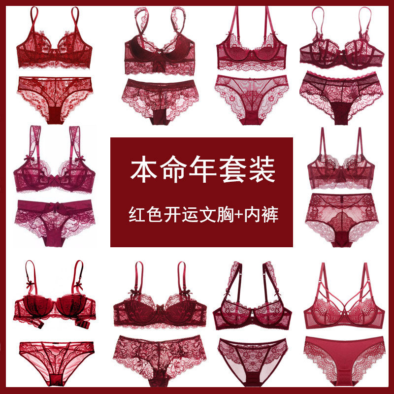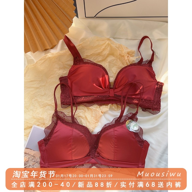 桃花季小胸聚拢新年红色结婚内衣套装新娘本命年情侣无钢圈文胸罩