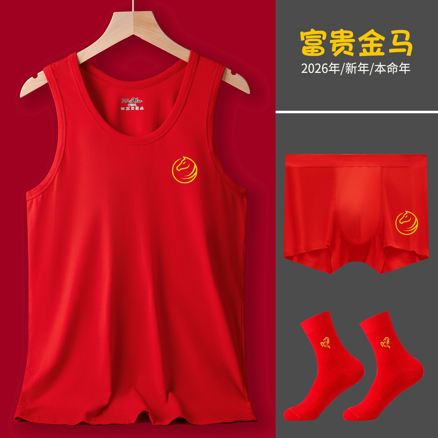 马年无痕背心男士大红色本命年莫代尔薄款本历年吊带结婚内衣套装