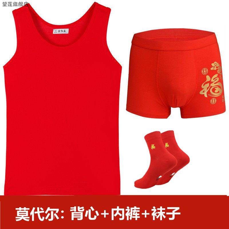 本命年男士红色背心莫代尔薄款红内裤结婚内衣套装莱卡棉背心内裤