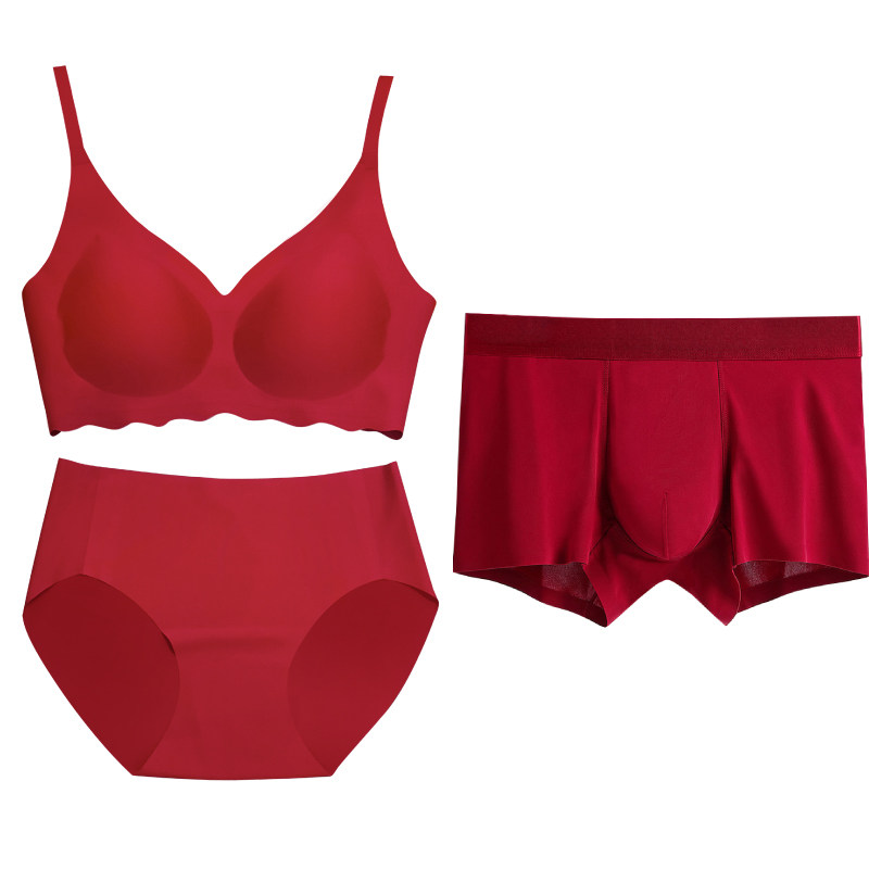 大码红色结婚内衣套装新娘新郎情侣新婚内裤一男一女文胸大胸显小