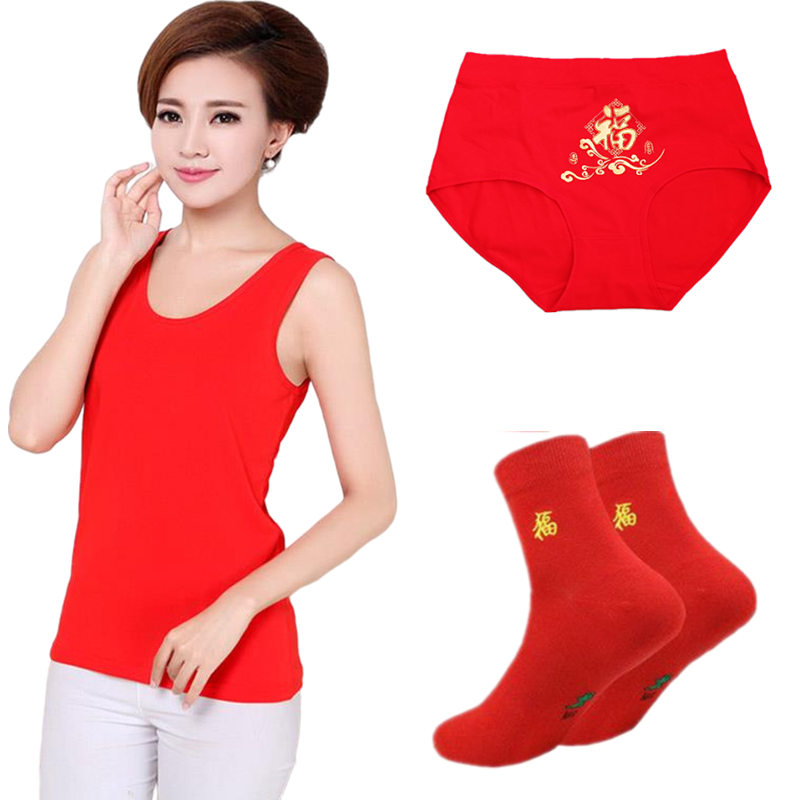 红豆红本命年内衣套装女大红色内裤袜子保暖马年结婚男士秋衣秋裤