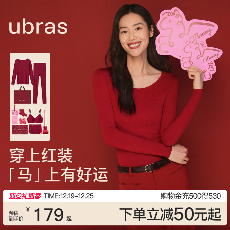ubras本命年红色含羊毛保暖内衣套装男女结婚生肖马新年秋衣秋裤