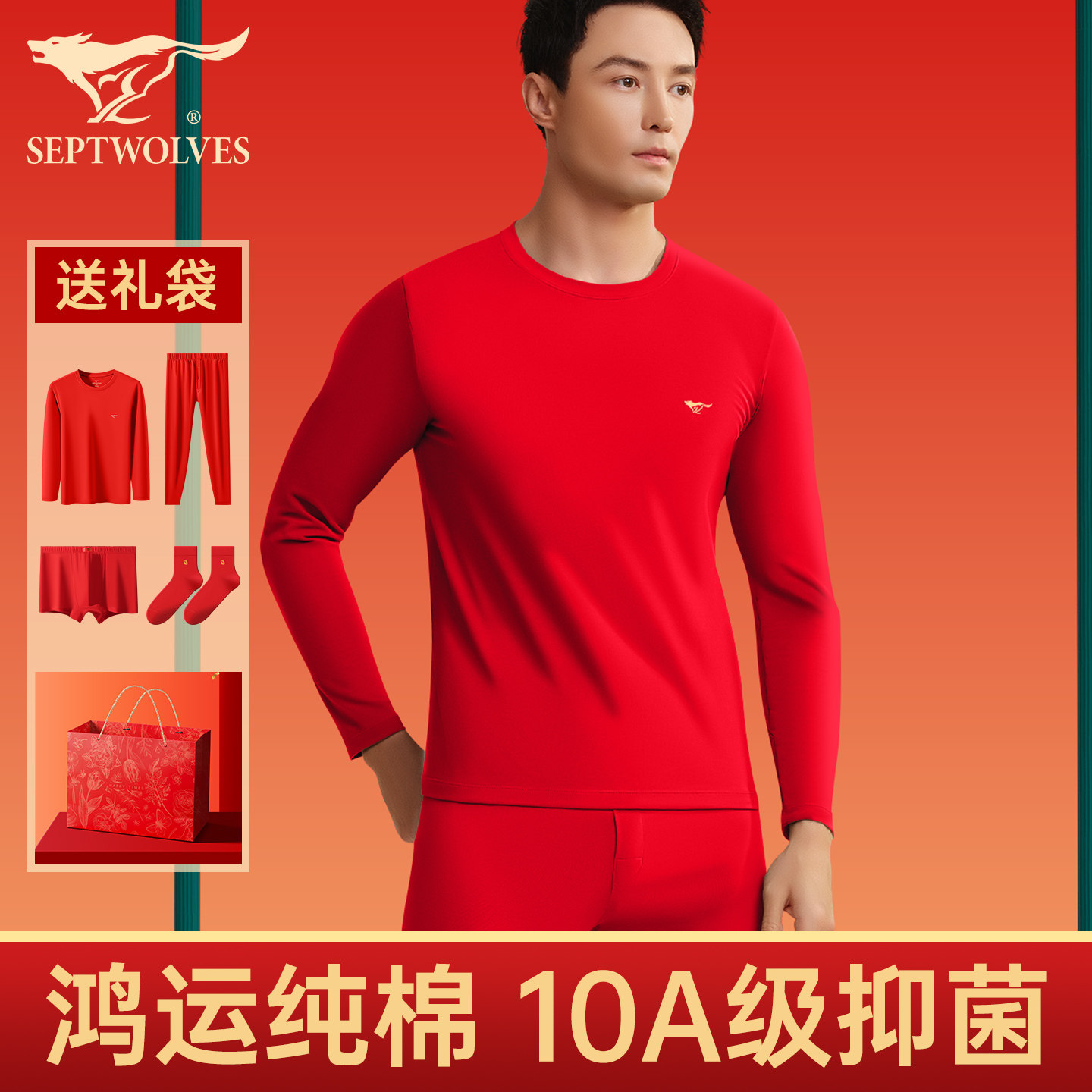 七匹狼本命年保暖内衣套装男士纯棉秋衣秋裤新款结婚红色衣服礼物