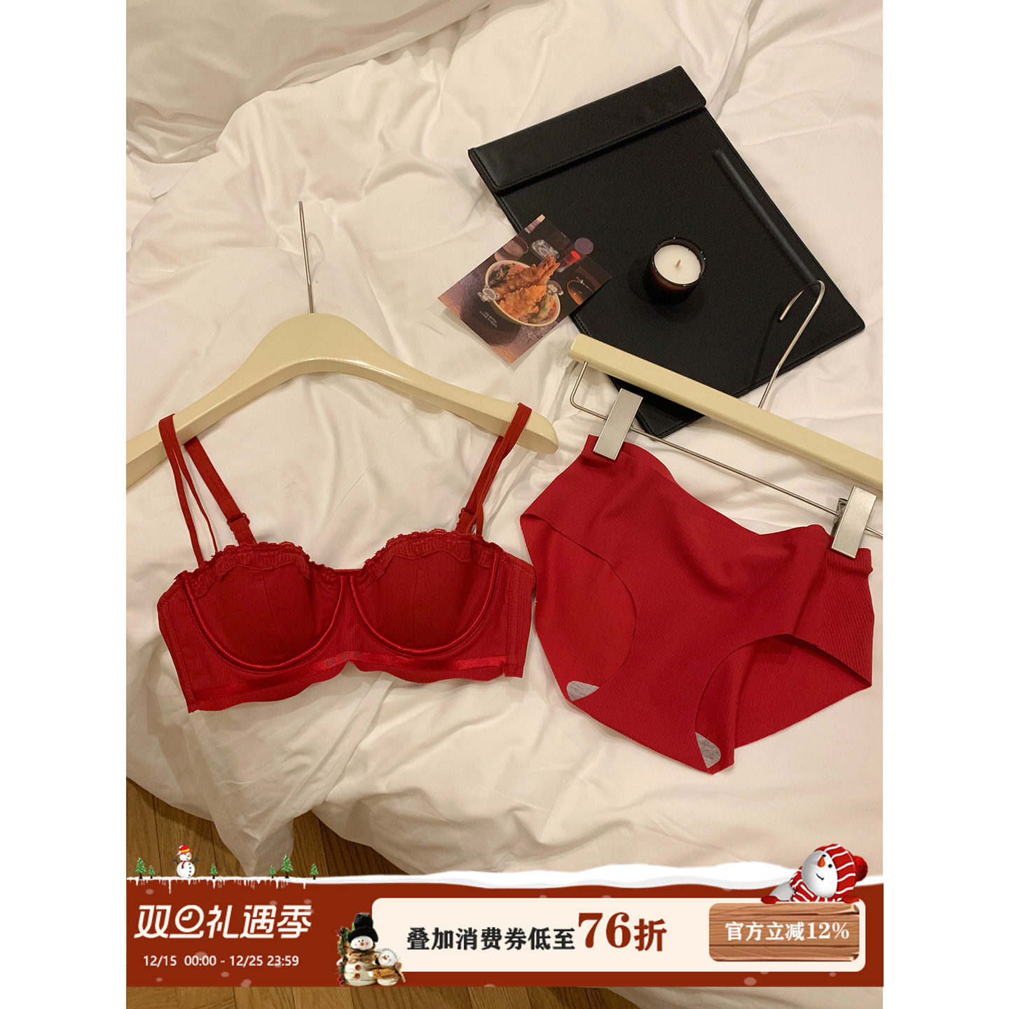 大红色本命年结婚内衣套装女小胸聚拢无钢圈属蛇年2025性感文胸罩