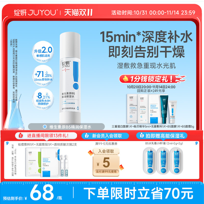 绽妍清透b5爽肤水 补水舒缓保湿水 湿敷修护精华水 滋润化妆水