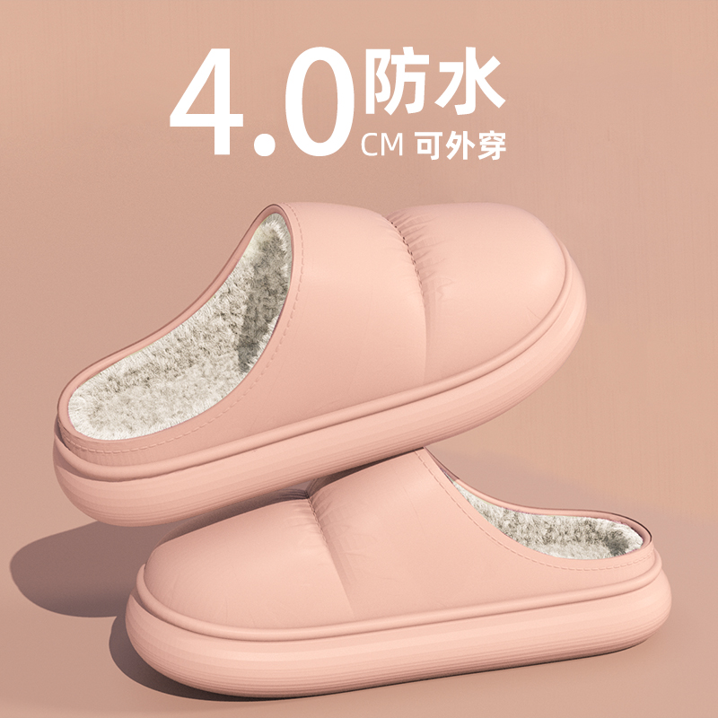 买一送一防水棉拖鞋女秋冬2024新款厚底保暖加绒家用家居棉拖鞋男