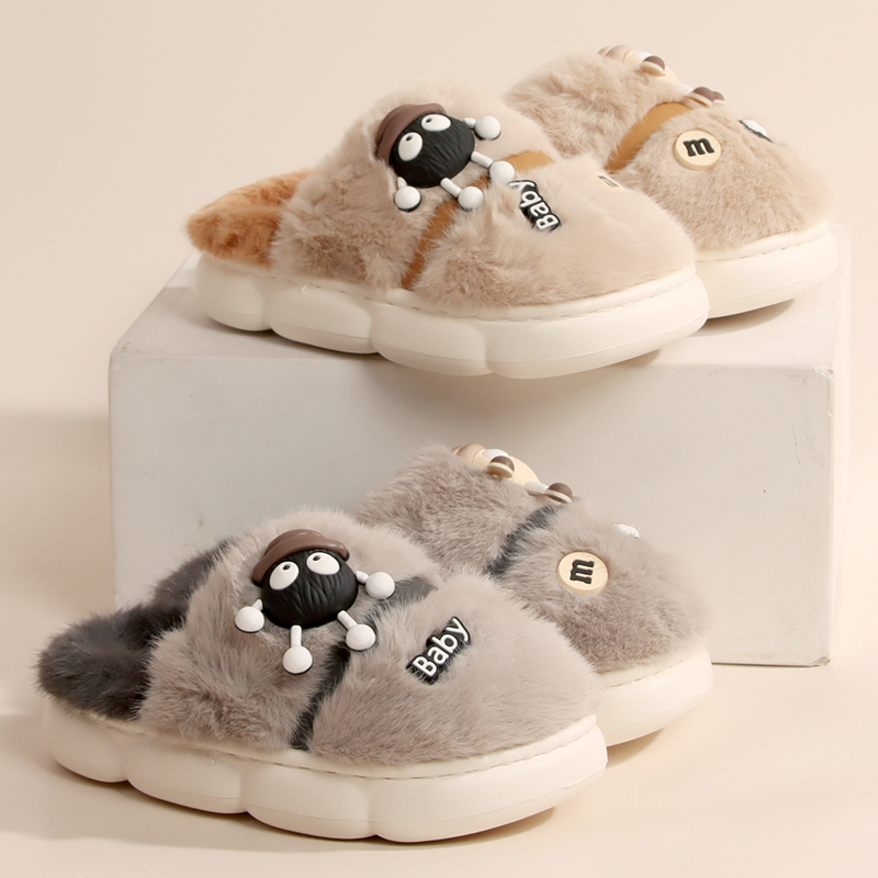 棉拖鞋女家用秋冬天居家室内保暖防滑可爱卡通毛毛绒家居棉拖鞋男