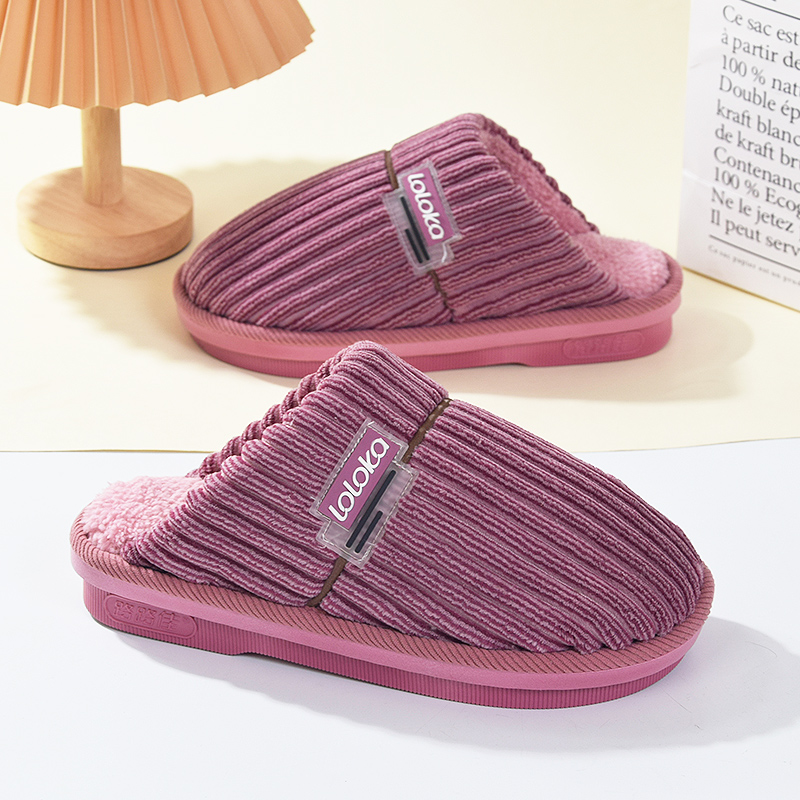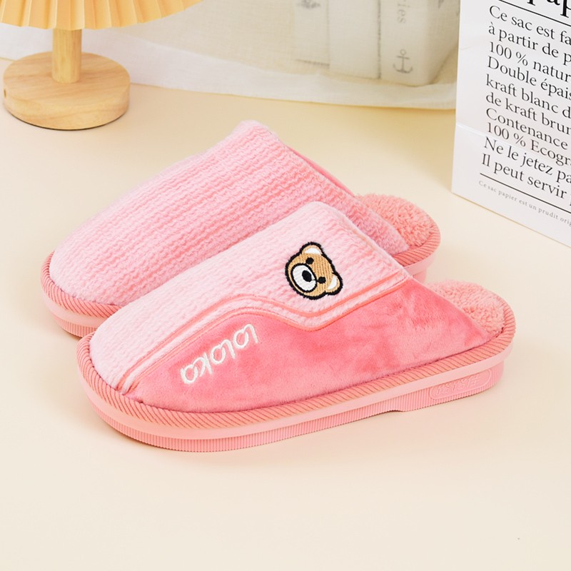 日式冬季家居棉拖鞋男女儿童室内木地板软底静音小童卡通毛绒拖鞋
