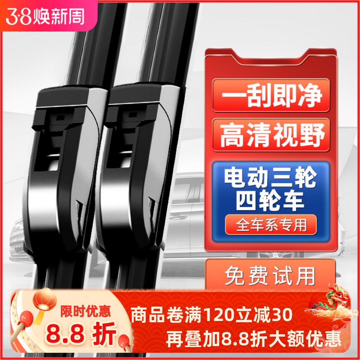 盛昊电动三轮四轮车六层胶条雨刮器老年代步车通用新能源无骨刷片