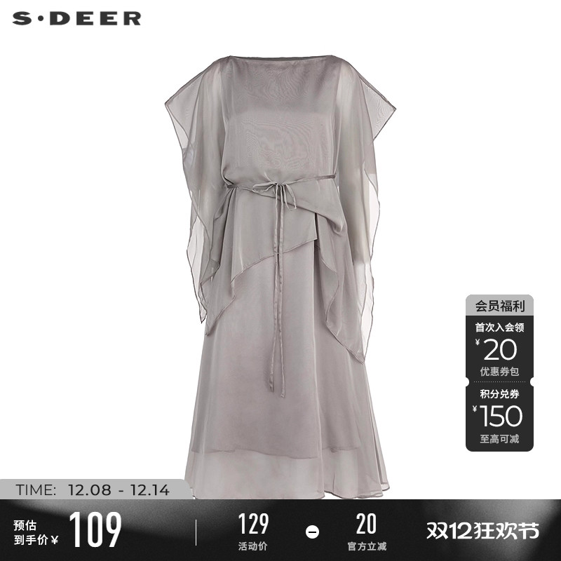 sdeer圣迪奥秋装女装圆领不规则雪纺短袖连衣裙S223Z12R5