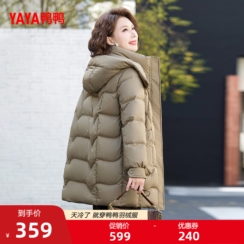 鸭鸭妈妈装羽绒服女2025秋冬新品中长款中老年加厚连帽保暖外套J