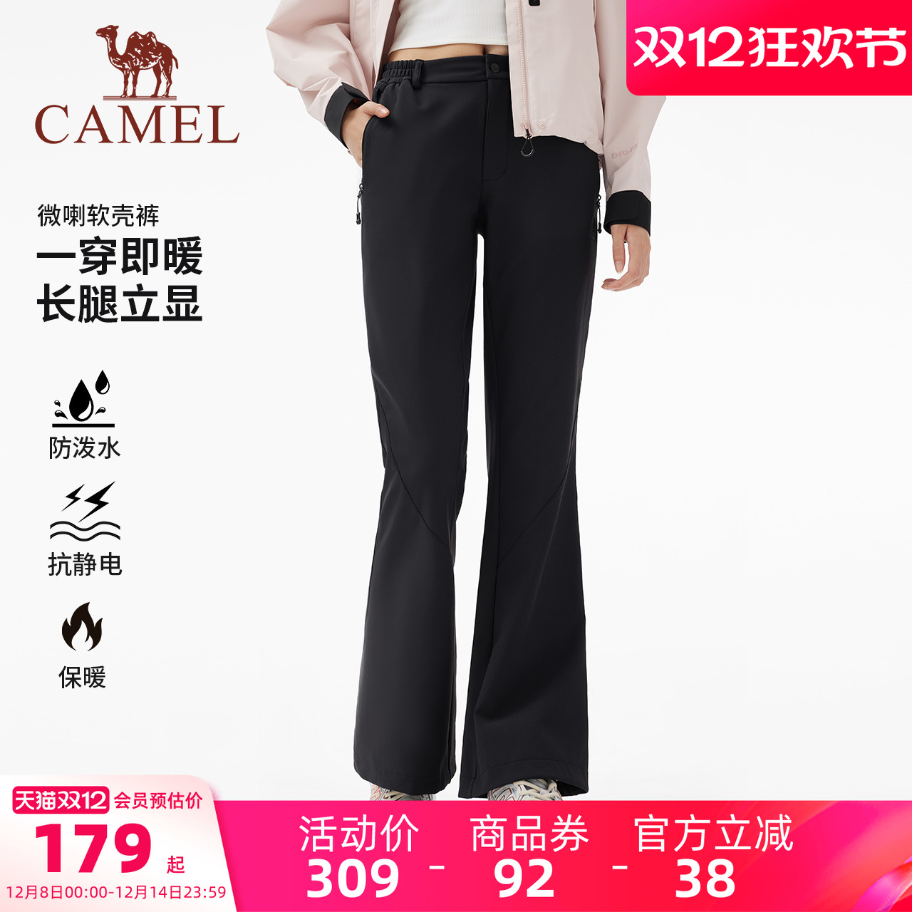 骆驼女装软壳微喇裤2025秋冬新款加绒保暖户外防风防泼水休闲裤