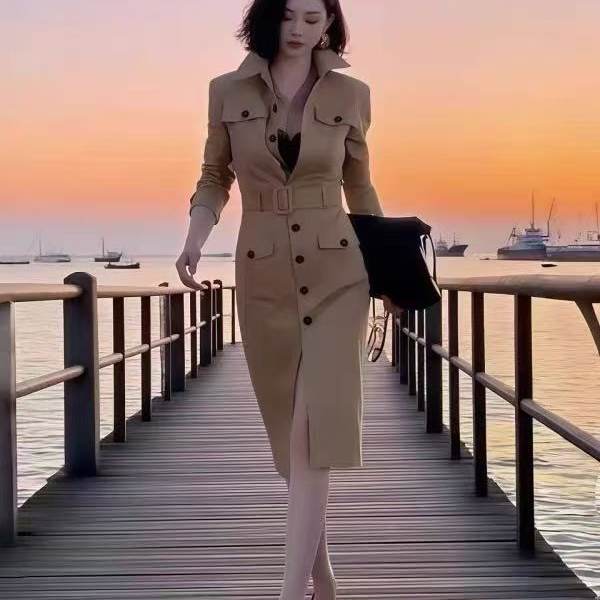 - 女针织款秋中长开衫