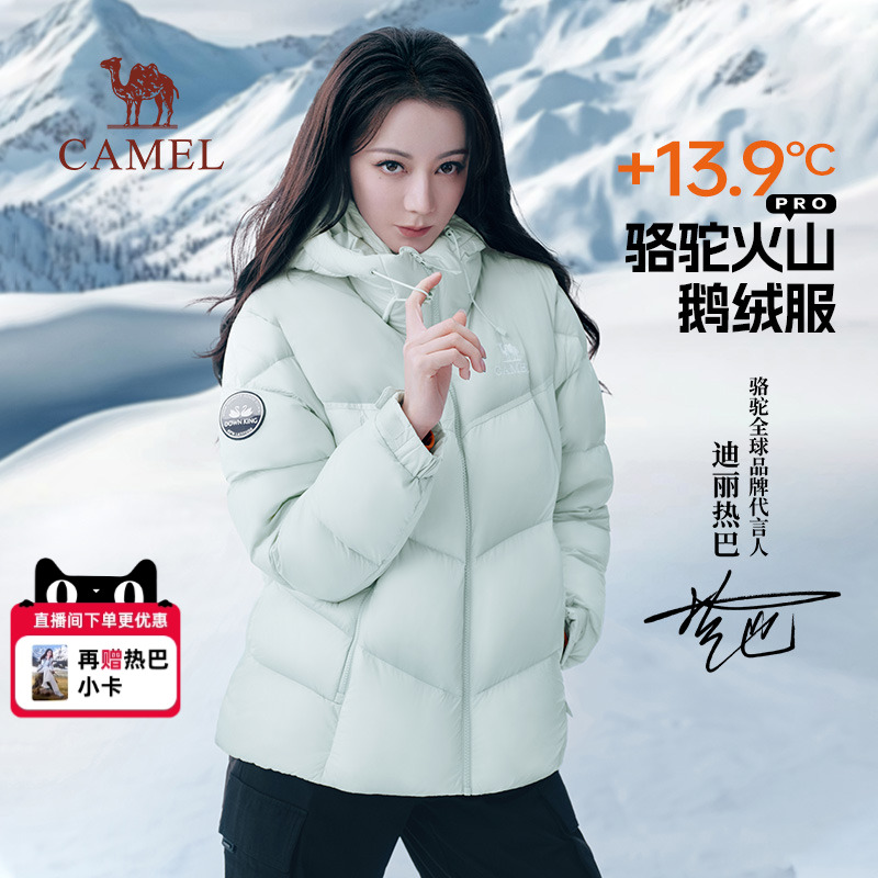 【迪丽热巴同款】骆驼火山PRO鹅绒服女装2025秋冬新款面包羽绒服
