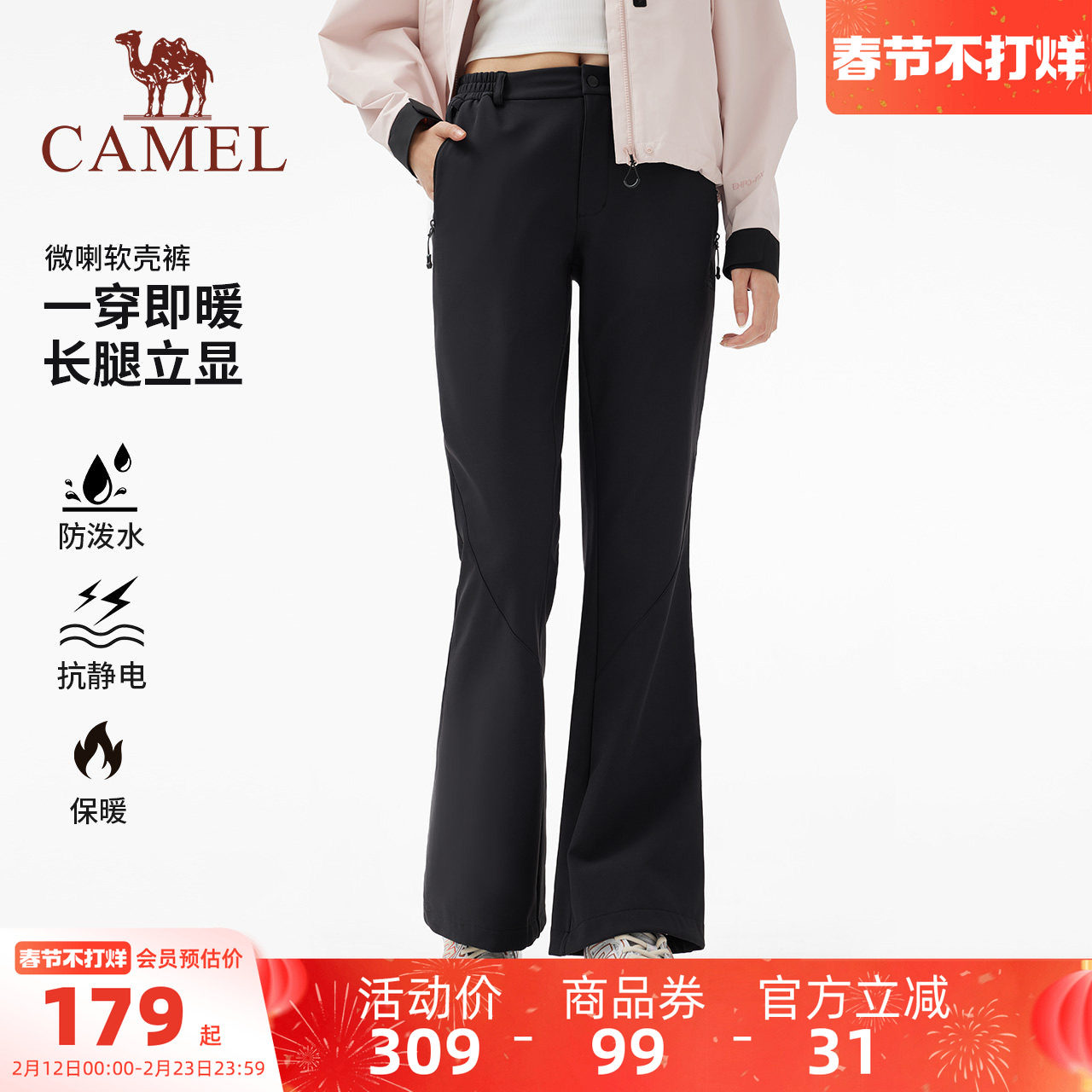 骆驼女装工装裤2025秋冬加绒加厚保暖防泼水户外束脚休闲长裤子男