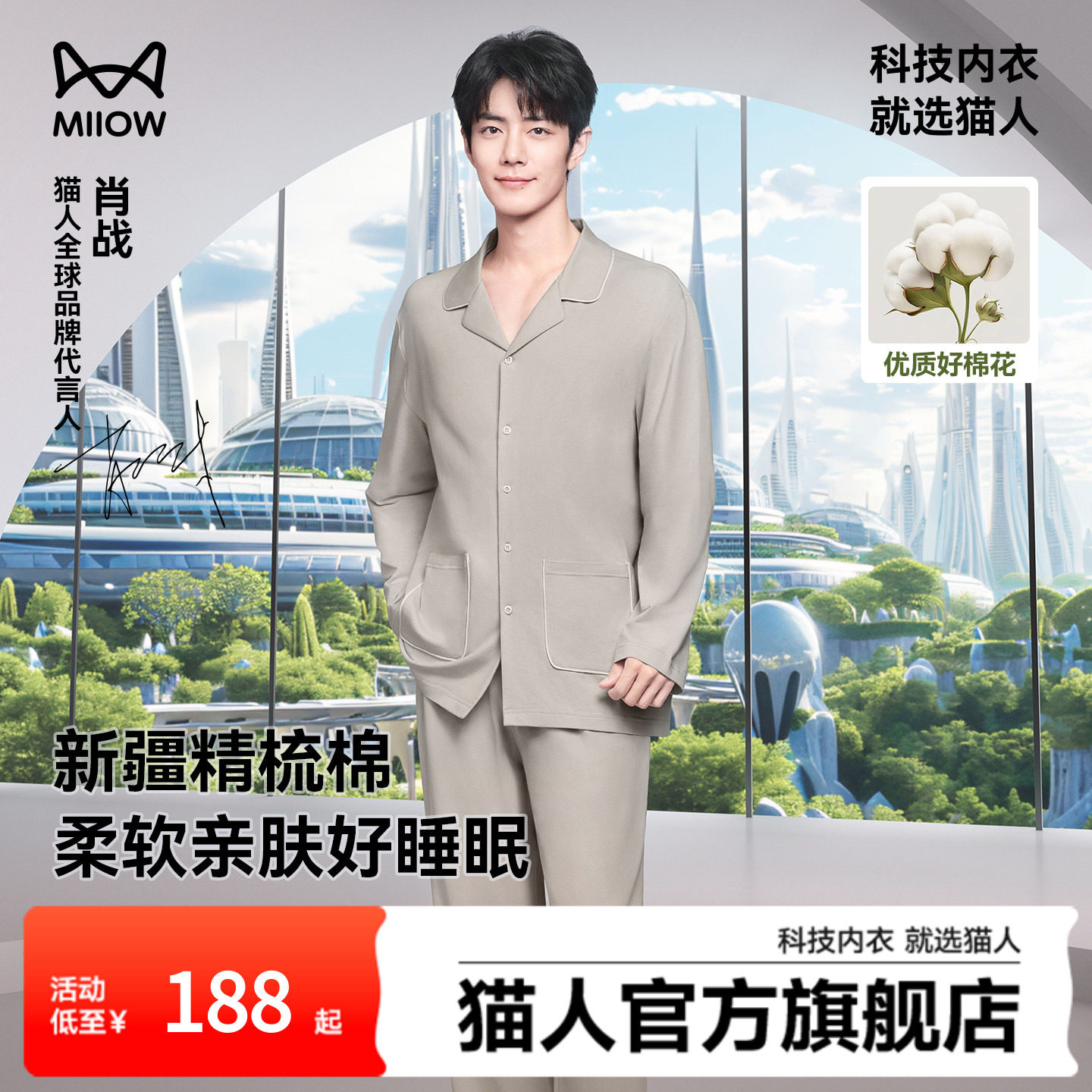 【肖战同款】猫人睡衣男款纯棉家居服2026新款秋装女士情侣可外穿