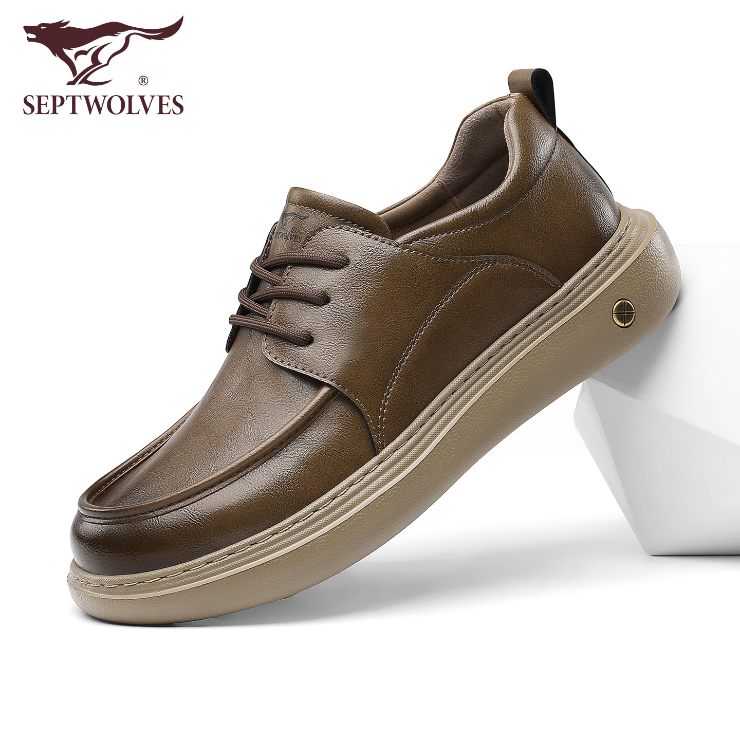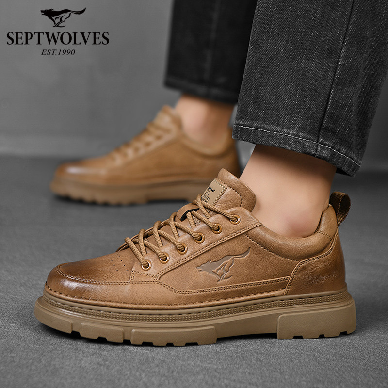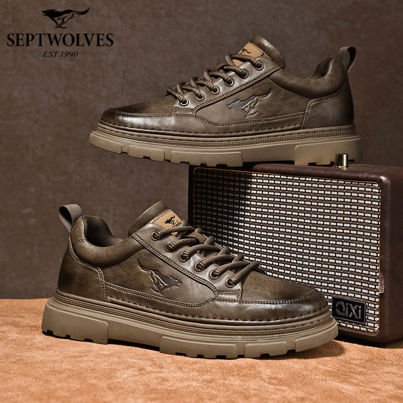 七匹狼皮鞋男款复古工装休闲鞋英伦风厚底鞋冬季新款透气通勤男鞋
