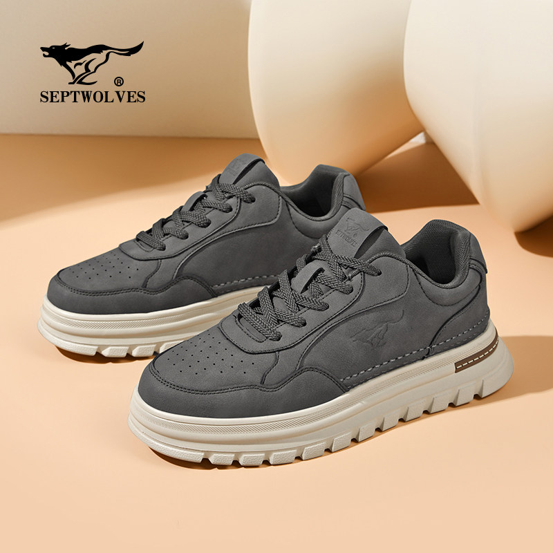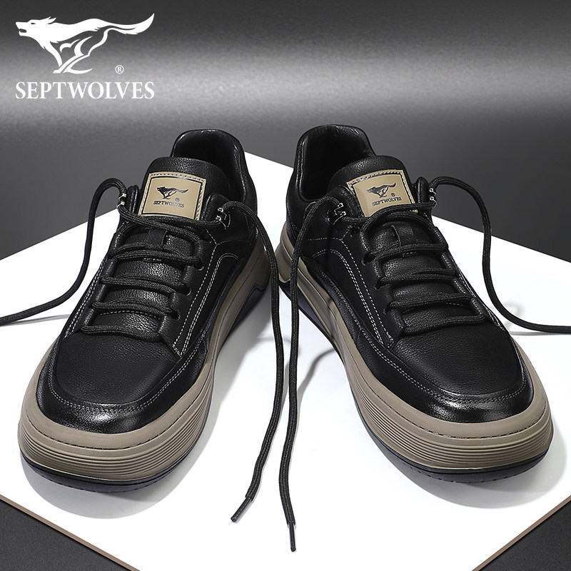 七匹狼男鞋男士黑色休闲鞋防滑厚底鞋男冬季新款透气皮鞋运动鞋子