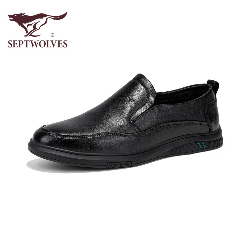 七匹狼男鞋韩版商务休闲鞋套脚防褶皱牛皮鞋手工软底软面驾车鞋子