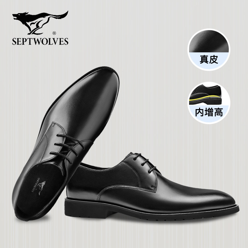 七匹狼皮鞋男秋季男士真皮内增高青年商务正装休闲百搭结婚新郎鞋