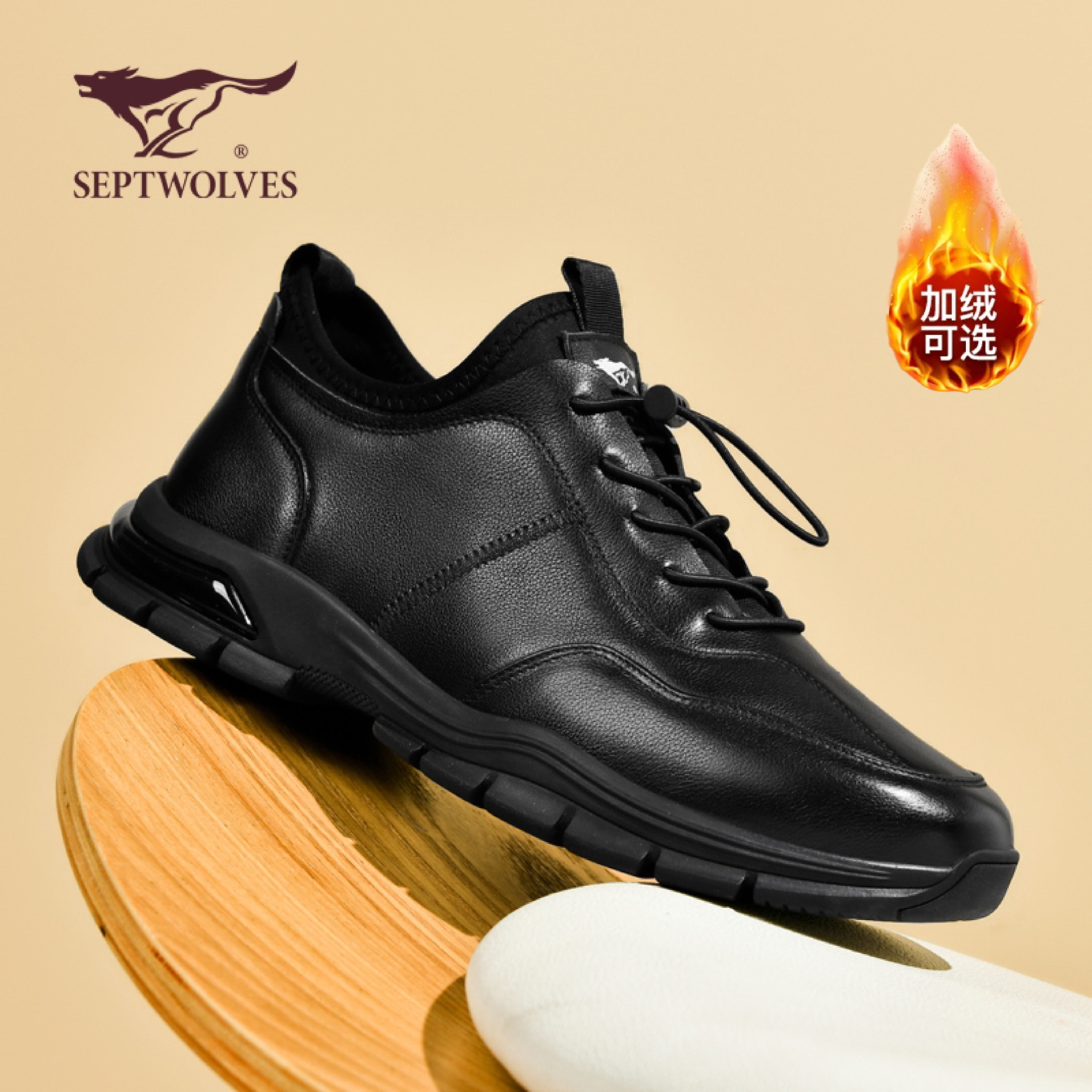 七匹狼男士真皮皮鞋黑色四季秋冬加绒保暖爸爸鞋纯牛皮商务休闲鞋
