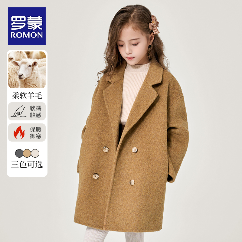 罗蒙女童双面羊毛大衣2025秋冬新款中长款中大童毛呢外套呢子大衣