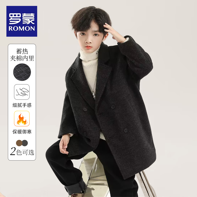 罗蒙儿童呢子大衣男童夹棉外套冬季加厚2025新款女童冬装毛呢上衣
