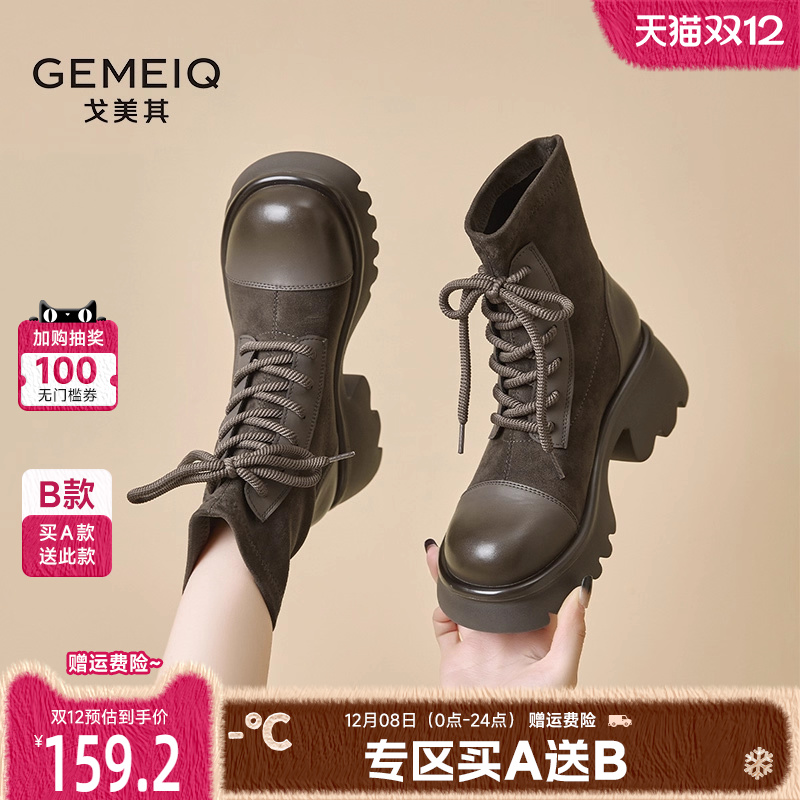 戈美其厚底马丁靴女款舒适春季新款短靴英伦风靴子百搭加绒女鞋子