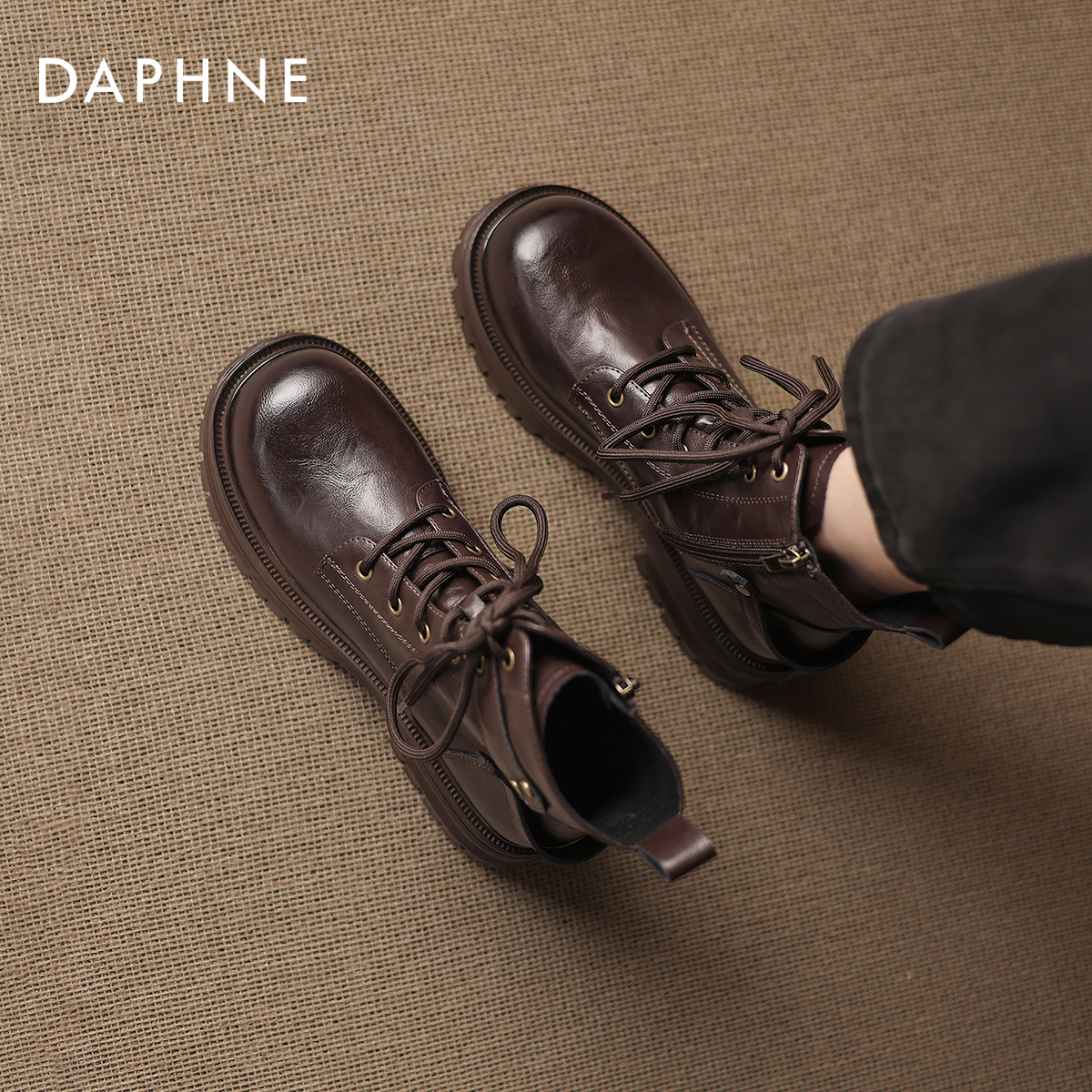 达芙妮厚底马丁靴女款2025新款英伦风鞋子女鞋冬棕色美拉德短靴子