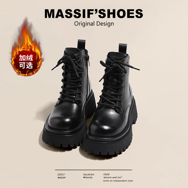 玛速主义 2025新款英伦风时尚厚底马丁靴女冬黑色短靴ins潮炸街靴