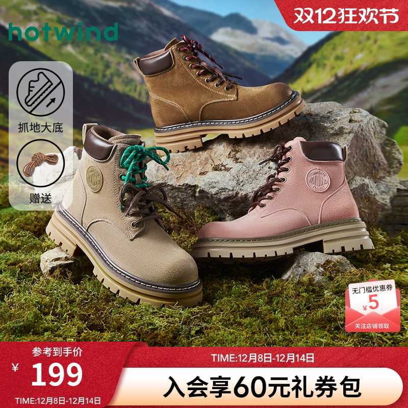 热风厚底马丁靴女2025年冬季新款休闲增高工装靴复古百搭短筒靴子