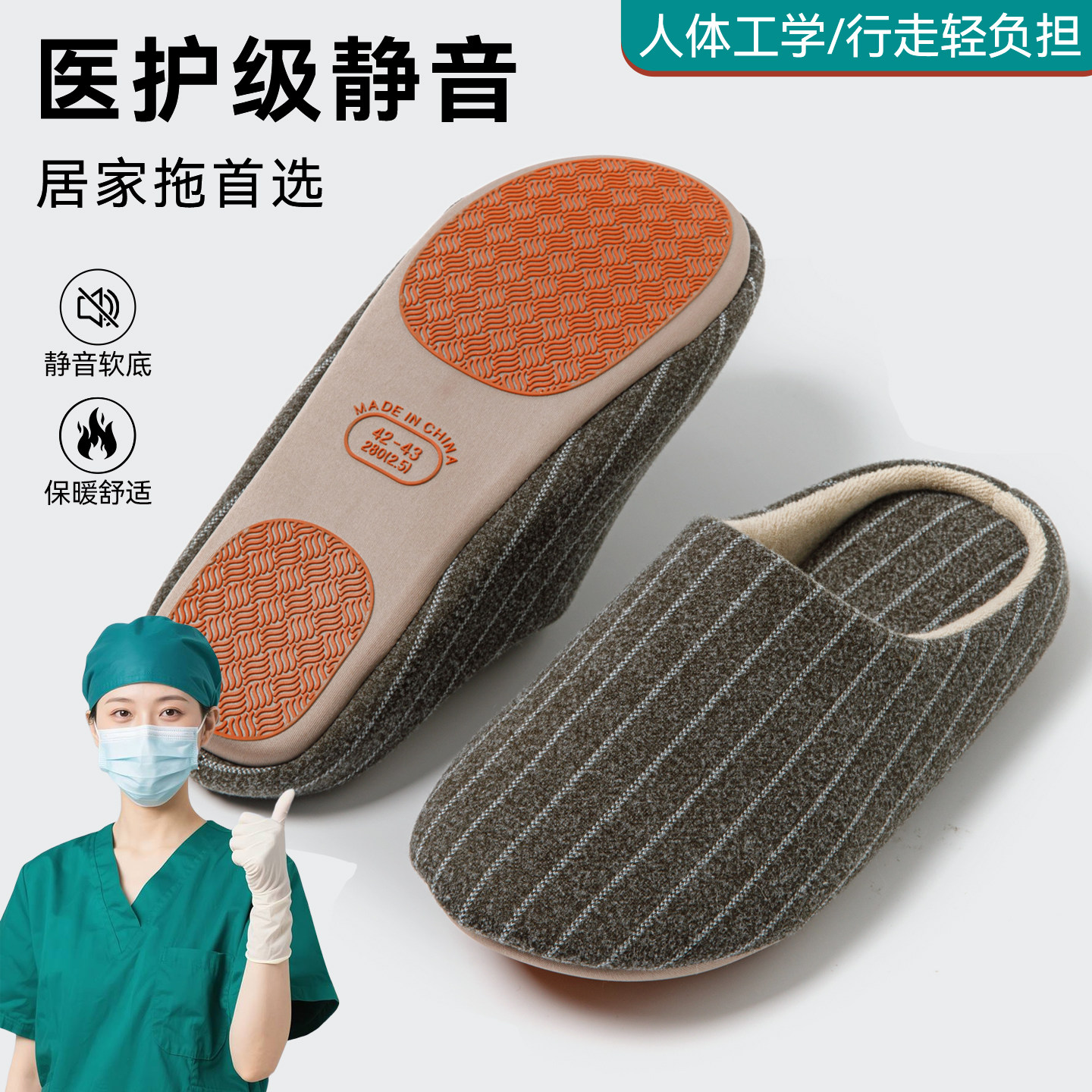静音拖鞋女款日式秋冬室内家居棉拖抗菌无声防滑木地板专用拖鞋男