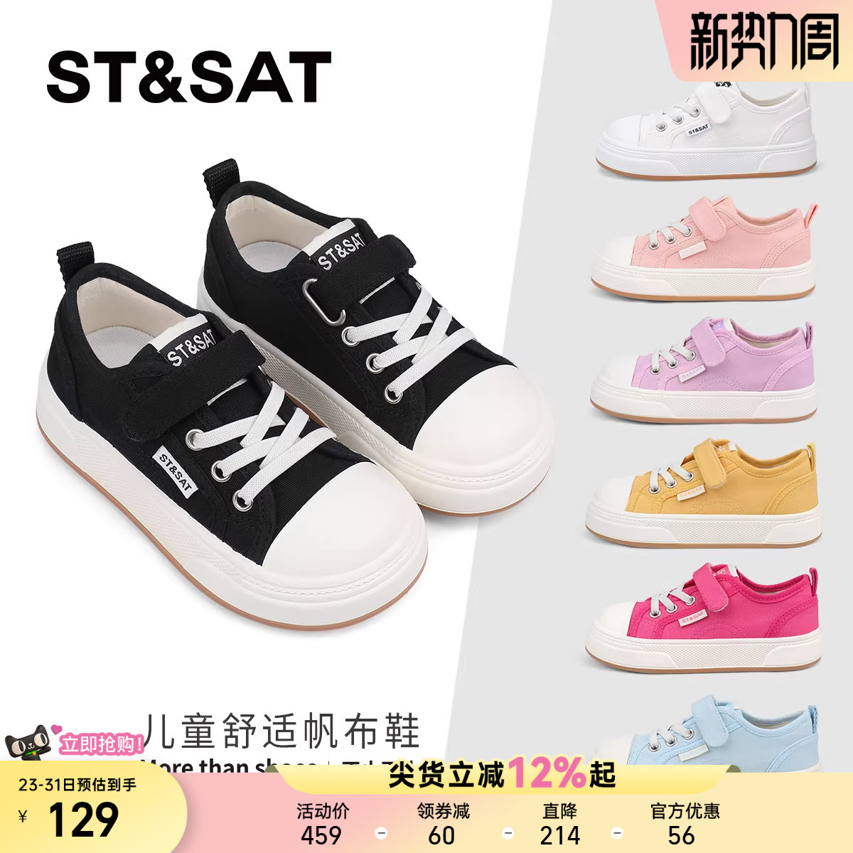 星期六儿童百搭帆布鞋新款春秋男童板鞋防滑休闲魔术贴女童运动鞋