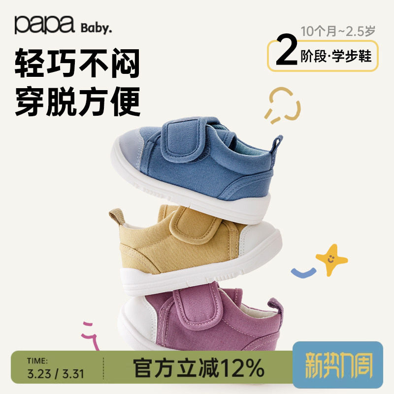 【新品】papa爬爬秋男女小童帆布鞋休闲宝宝魔术贴户外儿童板鞋