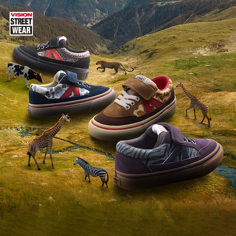 VISION童鞋 STICKY魔术贴动物纹低帮帆布鞋滑板鞋运动鞋男女儿童