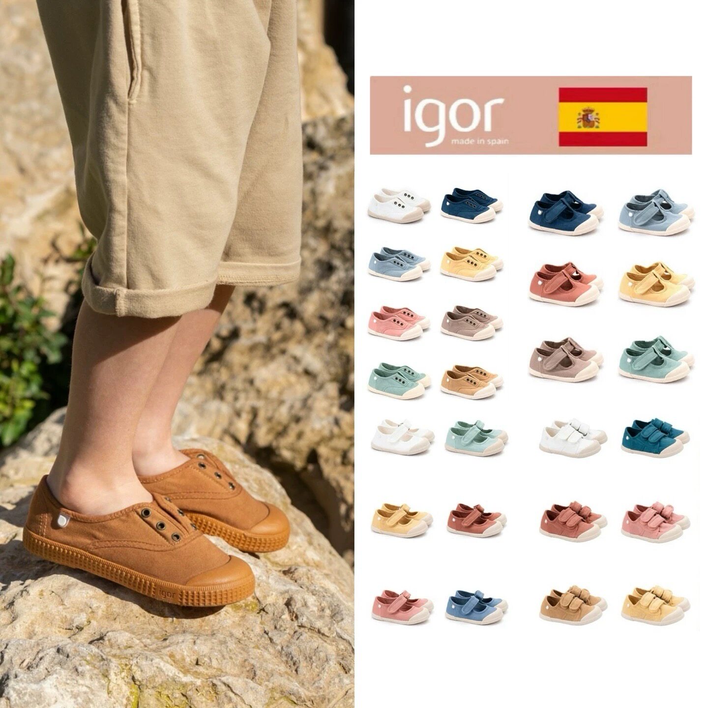 西班牙Igor帆布鞋魔术贴小白鞋男女童鞋幼儿园粘扣一脚蹬亲子