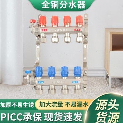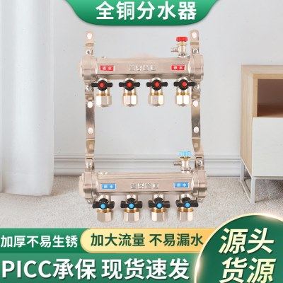 天一金牛地热地暖分水器管地热管集暖气分水器全铜大流量加厚家装