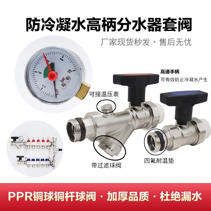 地热地暖分水器全铜暖气分水器1寸DN25ppr过滤套阀进水阀回水阀铜