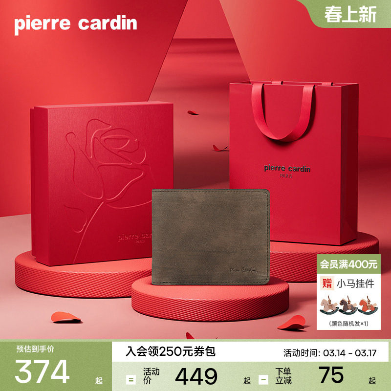 皮尔卡丹正品男士真皮短款钱包2026新款高级感时尚钱夹送男友礼物