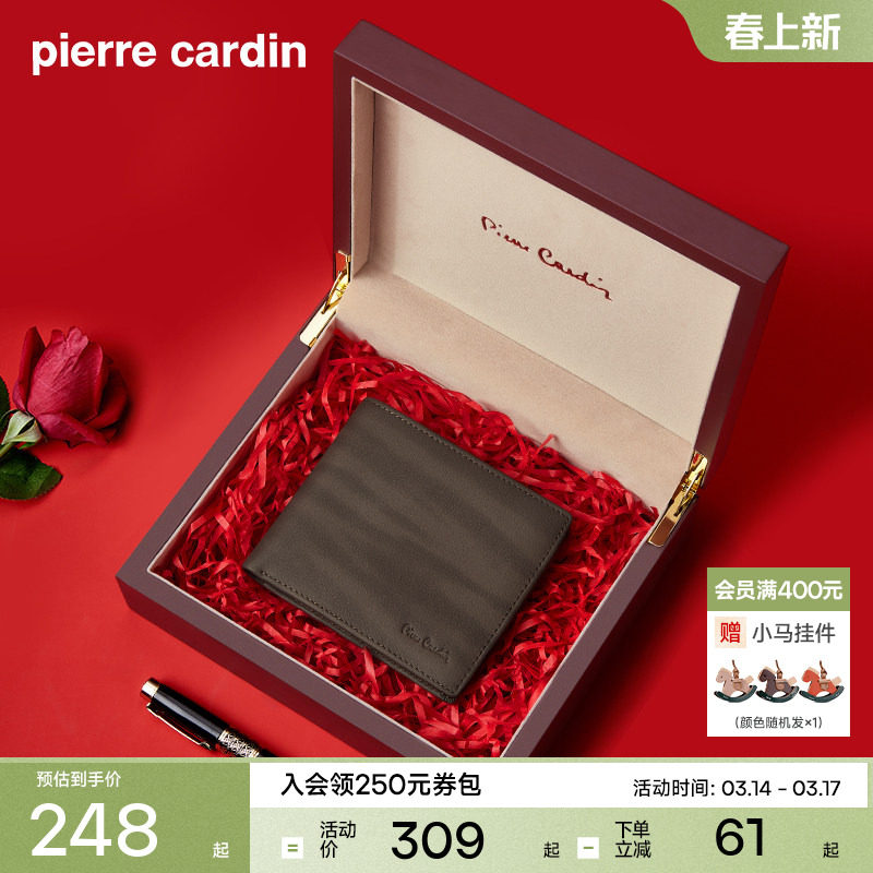 【真皮】皮尔卡丹送礼男钱包卡包一体男生短款正品皮夹子新款钱夹