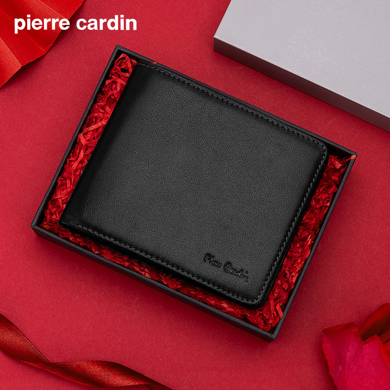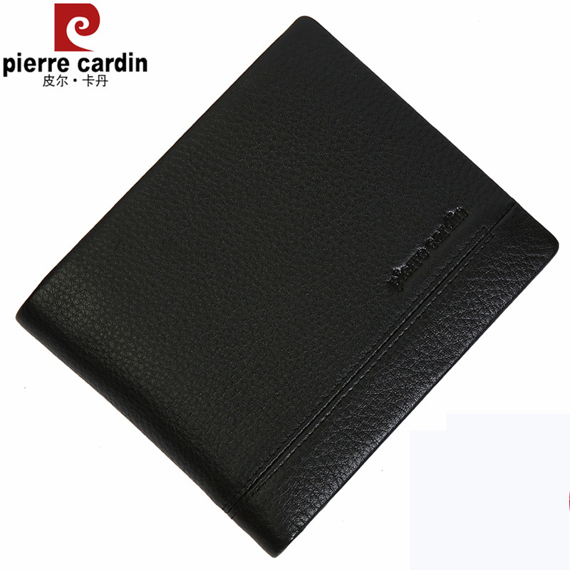 皮尔卡丹男士钱包正品新款牛皮钱夹真皮黑色商务短款横款票夹皮夹